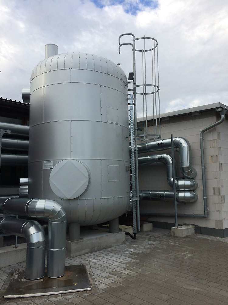 Installation einer Mehrkesselanlage, bestehend aus 3 Brennwertkesselanlagen mit einer Leistung von je 900kW.Pufferspeicher
